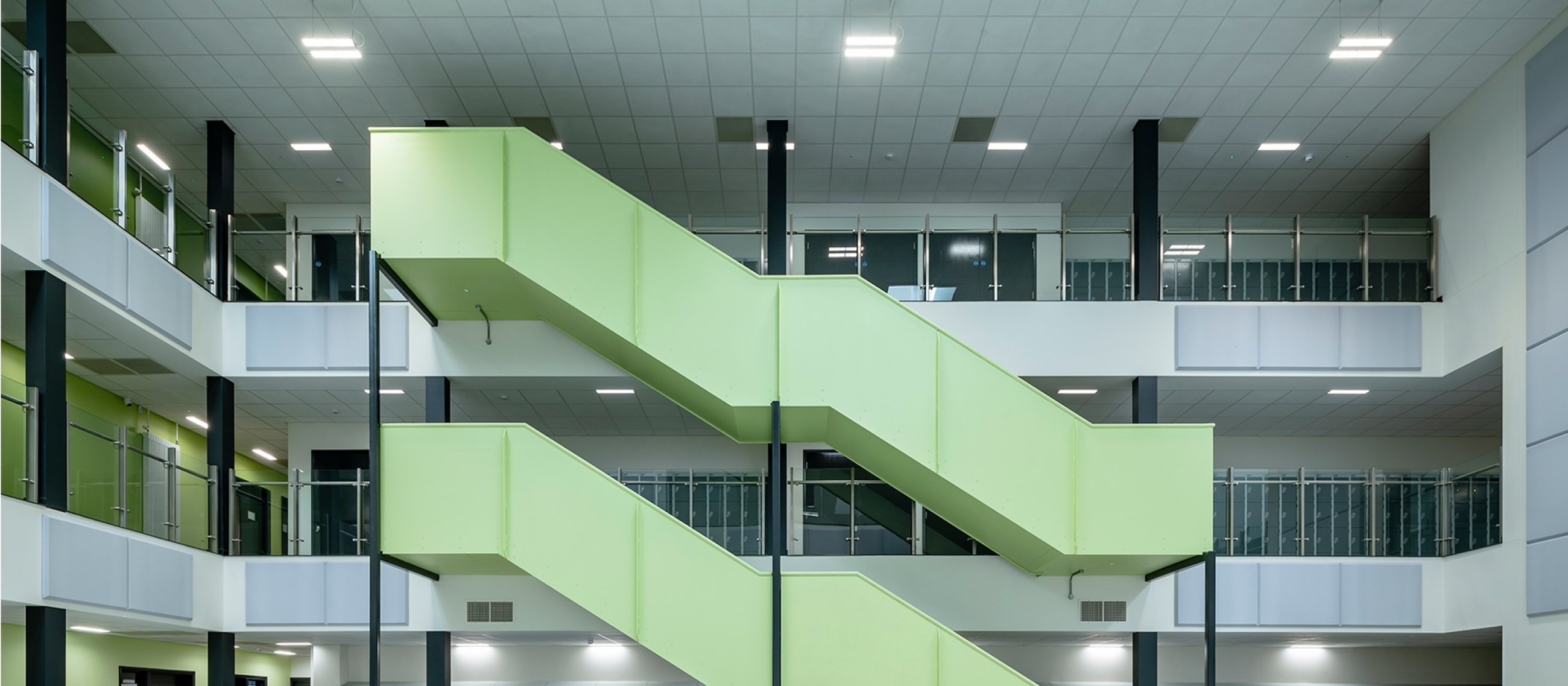 Whitecroft leveraged its experience in educational lighting to surpass the DfE’s energy efficiency standards. Collaborating with Prolojik, Whitecroft introduced innovations, including a switch from traditional AC to DC systems. This shift, powered by Prolojik’s power-over-ethernet DC driver, achieved 97% efficiency in lighting operations.