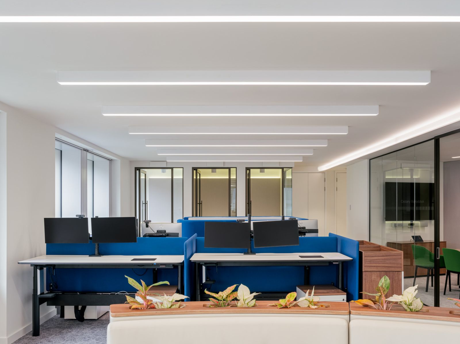 At 80 New Bond Street—a £36.6m office and retail development in London’s West End—our brief was to deliver a slim-profile, linear lighting solution that aligned with high sustainability goals, including reduced operational carbon and circular design principles.